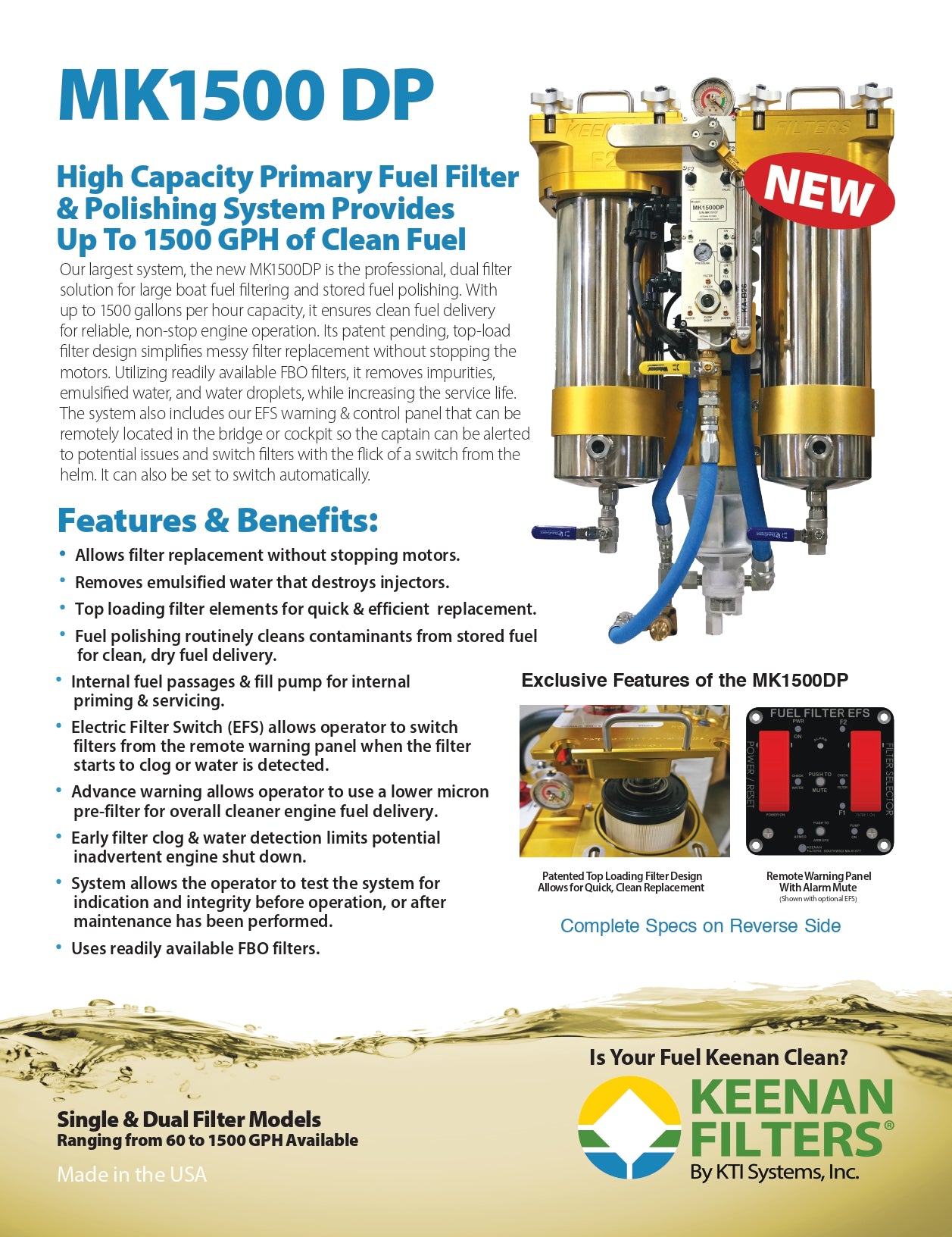 Whether you are polishing stored fuel or actively filtering during engine operation, the MK1500DP delivers superior performance, longer service life, and total control.