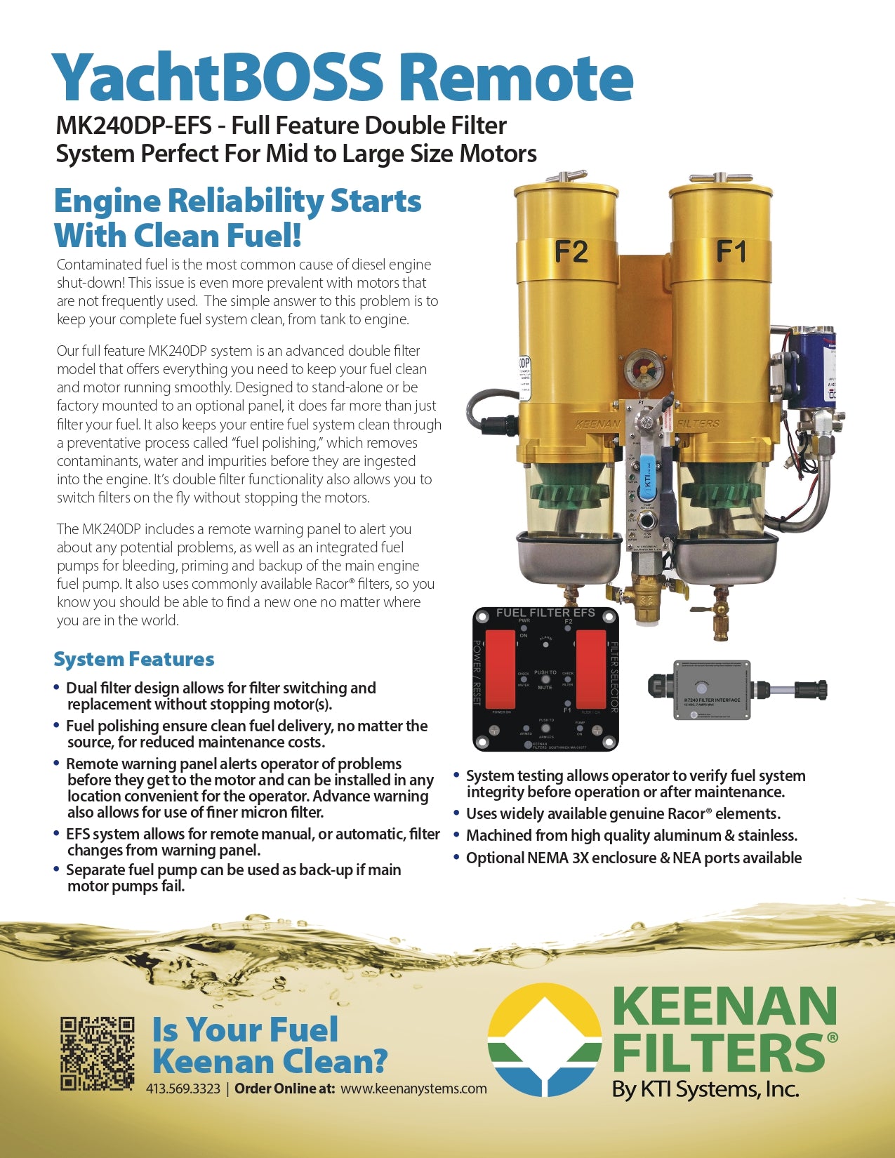 Take total command of your yacht’s fuel system with the YachtBOSS Remote. This upgraded version of the YachtBOSS Pro includes Electric Filter Switching (EFS), allowing operators to switch filters instantly from a remote panel. It’s a smarter, safer way to handle filter changes—especially while underway. Designed for yachts in the 50–80 ft range, this system combines dual filters, a high-capacity pump, and easy-to-reach controls. For captains and owners who want to minimize engine room visits and maximize uptime, the YachtBOSS Remote is the trusted companion for any journey.